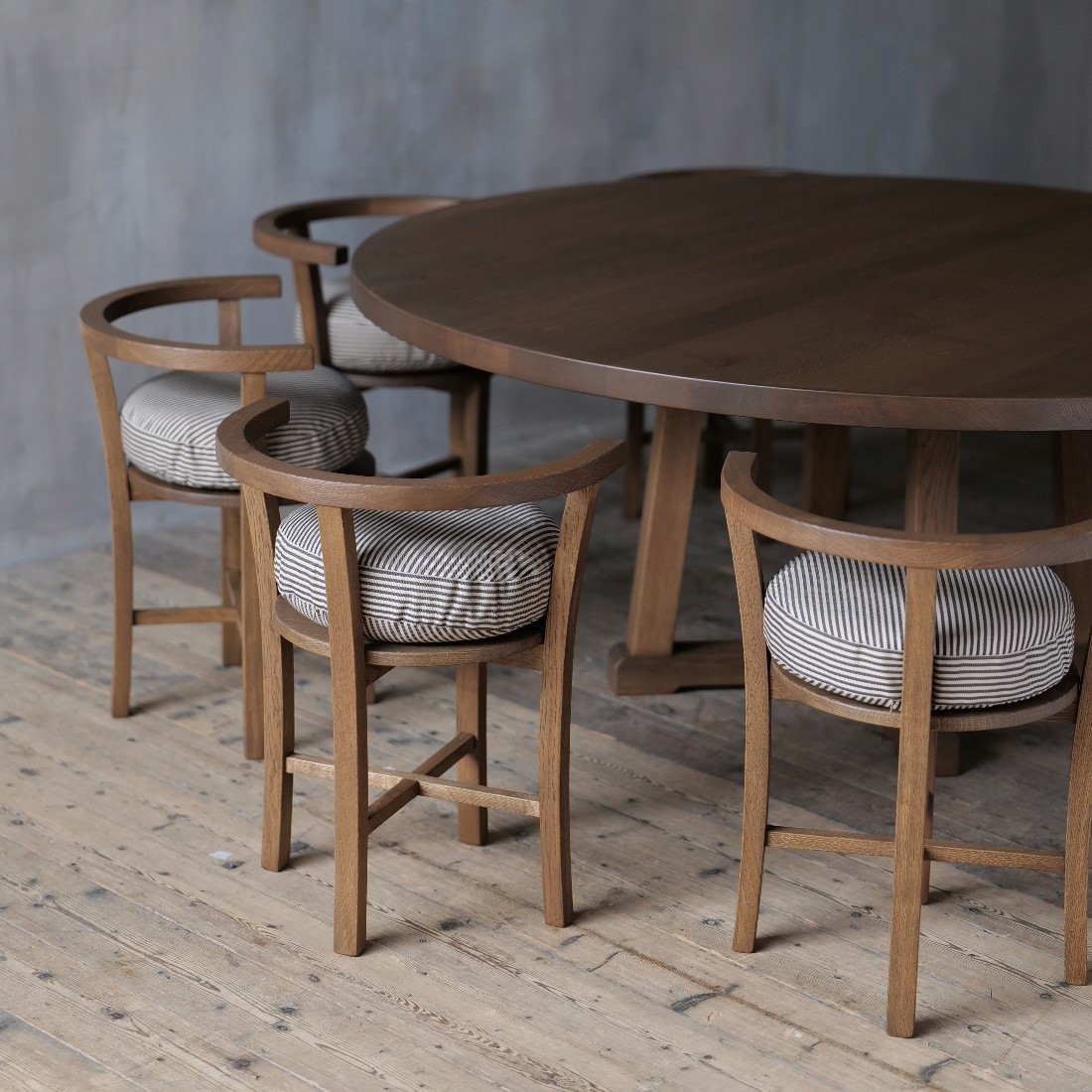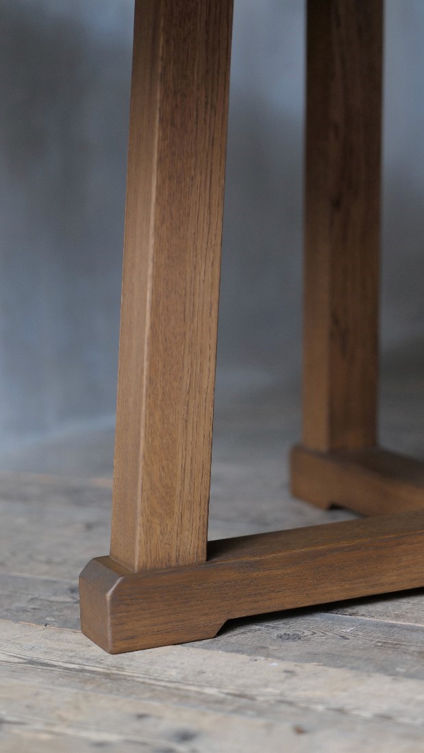 A simple architectural arts & crafts-inspired table constructed in prime FSC oak. Our client decided to size up their table, which means this beautiful 2025 dark umber crane table is now available.