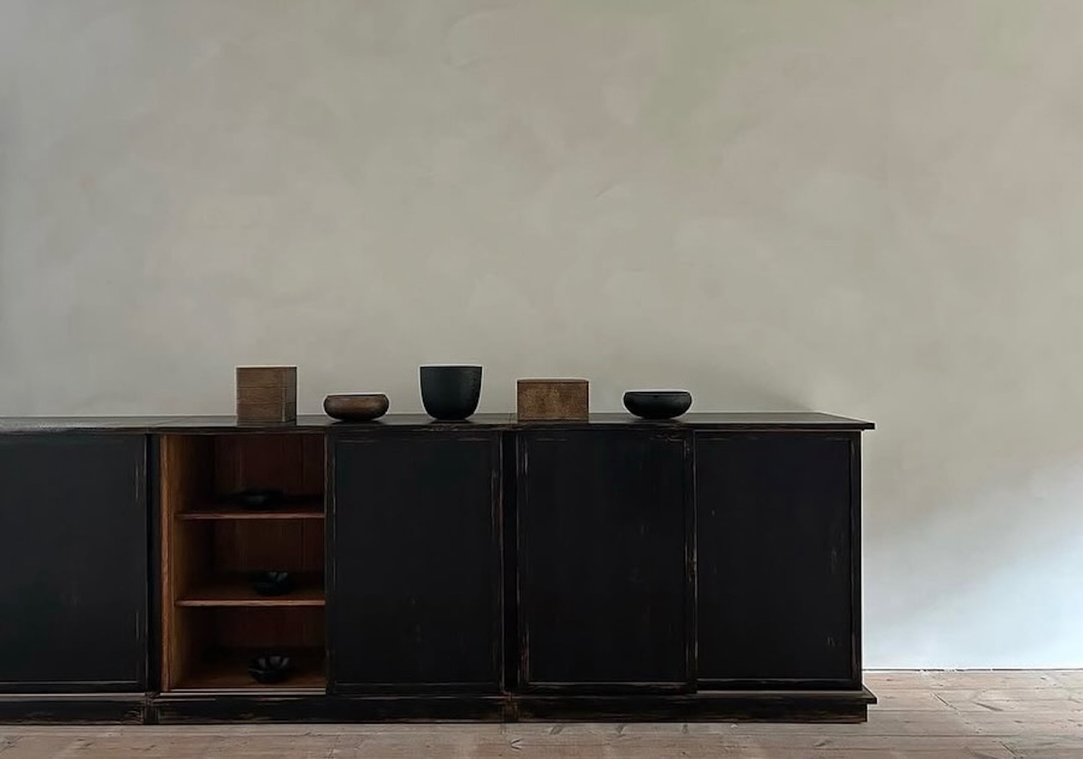 The cabinet has become a quietly wonderful accessory for the gallery’s beautiful art and craft.