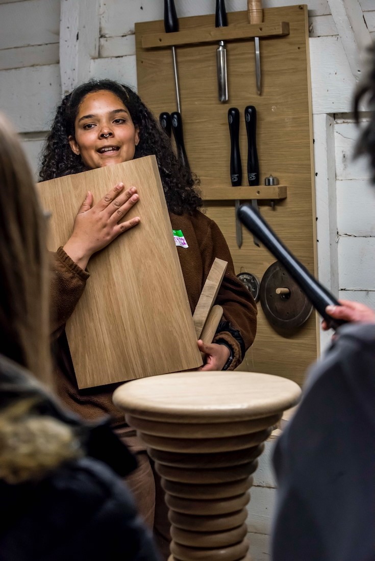 Last month, we welcomed three groups from the National Saturday Club into our workshop, travelling from Boston, Sleaford and Chain Bridge Forge. Their exciting mission for the day was to make a wooden chopping board, learning how to shape it using a hand router and hand sander, and finally finishing it with oil. Our team also showed a selection of our pieces from antiques to new, yet-to-be-launched products. The students were invited to handle the pieces to experience the quality, as well as the way an object evolves over time.