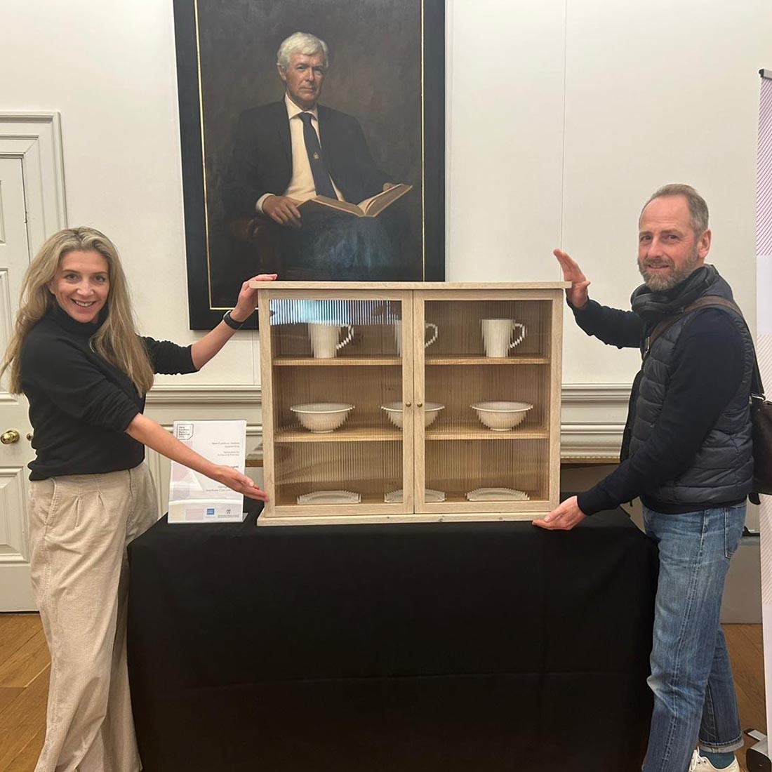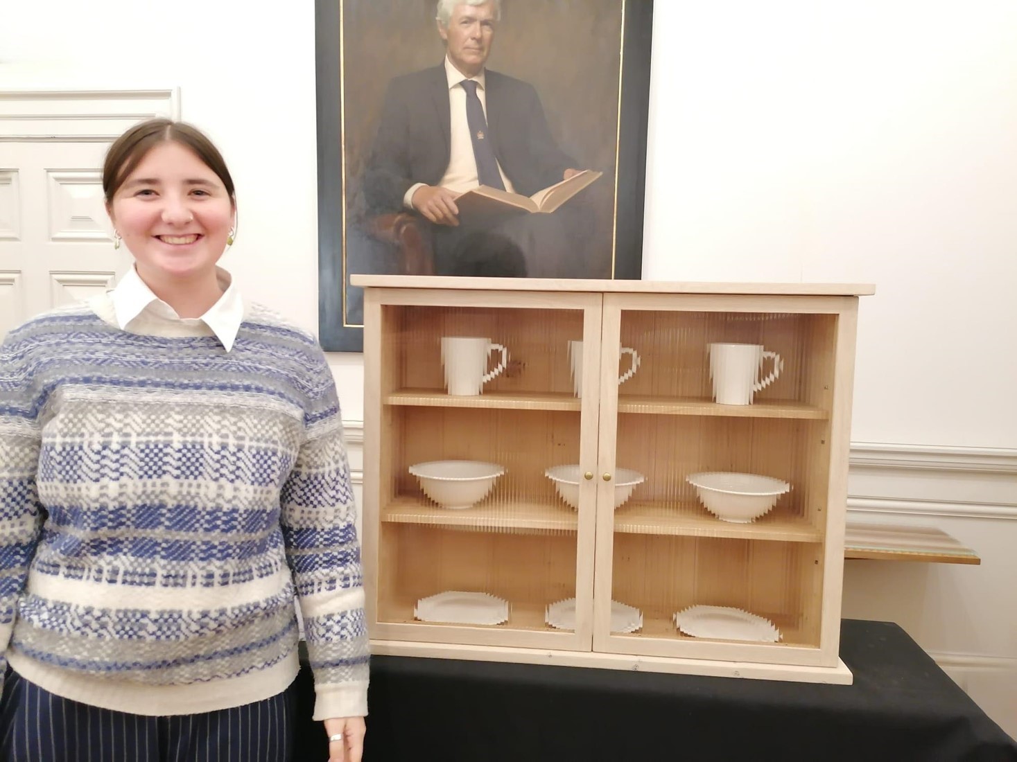 Georgia set herself the challenge of making a konami cabinet with fluted glass. It’s an unforgiving piece to attempt because every detail is exposed. Being displayed on a table rather than a wall invited visitors to inspect it from every angle, and they did. The reception was enthusiastic. One well-known furniture maker paused to examine it closely before saying, “The hardest thing in furniture making is to make a box, which is effectively what you’ve done… and you’ve absolutely smashed it.”