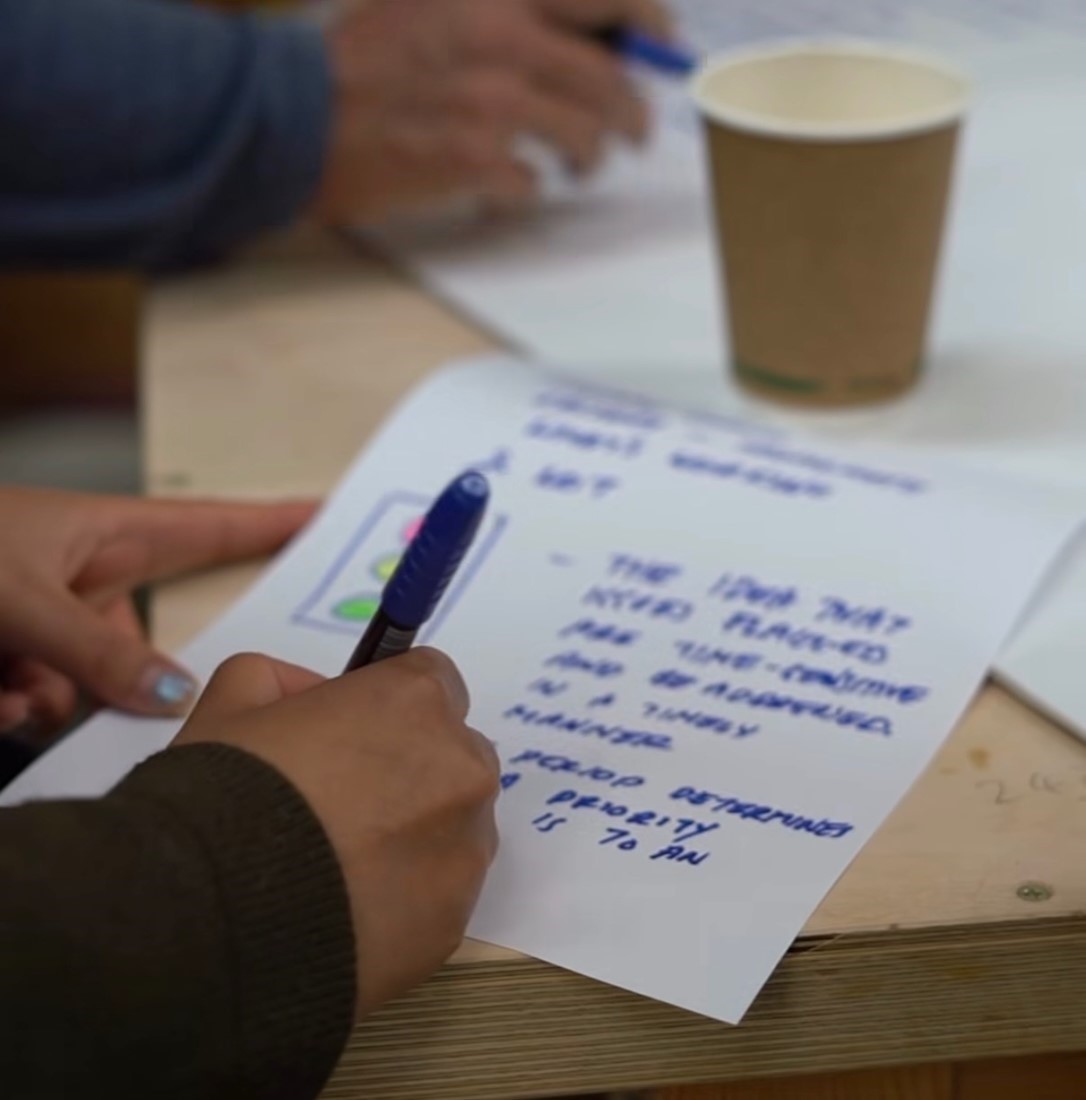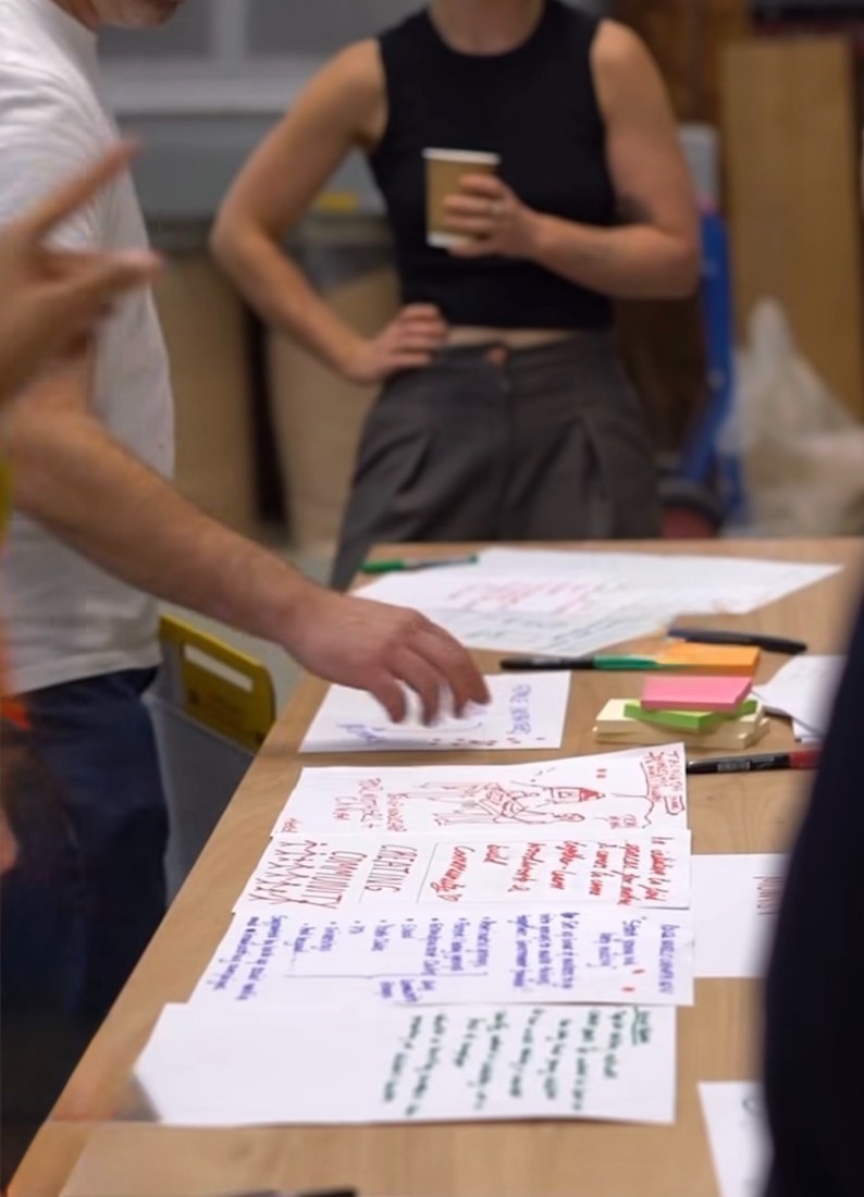 The afternoon workshops were energetic, urgent and great fun. Ideas moved quickly from conversation to sketches, ranging from realistic organisational changes to lighter, imaginative concepts like a travelling workshop that brings making into different communities. The “Wood Wagon” fleet of minibuses drew a lot of smiles, but also genuine interest. Ideas first labelled impossible were shaped into real possibilities.
